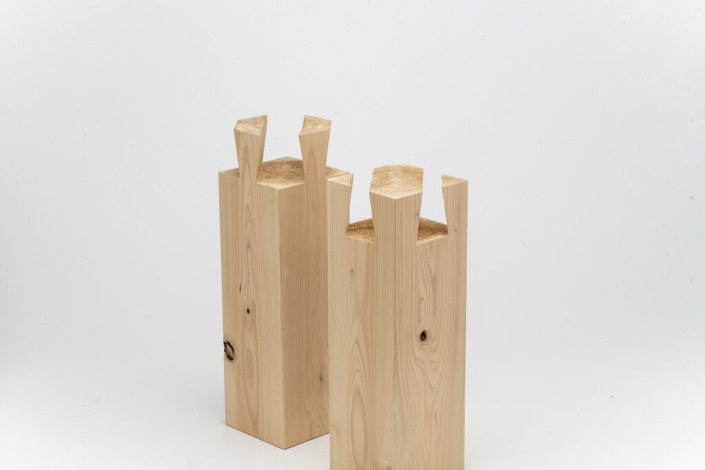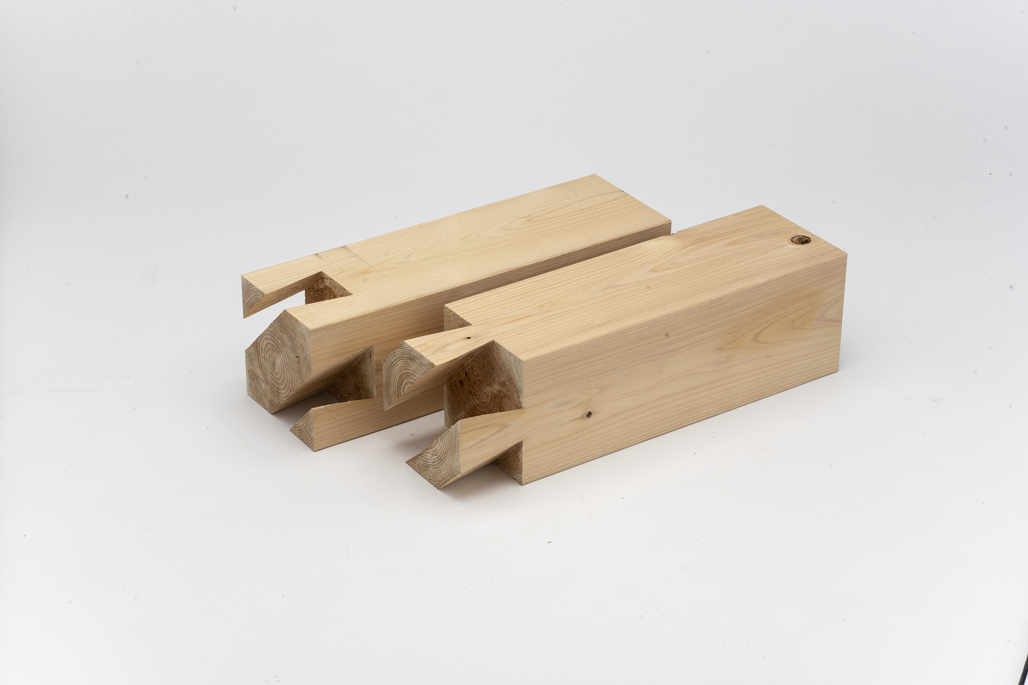 柱などに使用する。2本の蟻形柄と同形の溝を、2材にそれぞれ45度につくり、沈め込んだ継手で、四方に蟻形柄が見える。