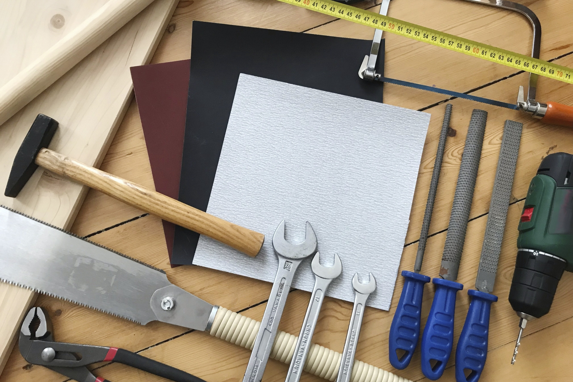- 基本工具(インパクトドライバー、のこぎり、ハンマー、水平器など)